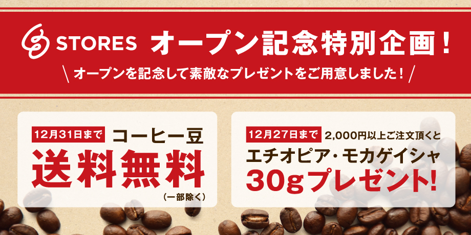 ・12月中、コーヒー豆の送料無料(一部商品を除く)